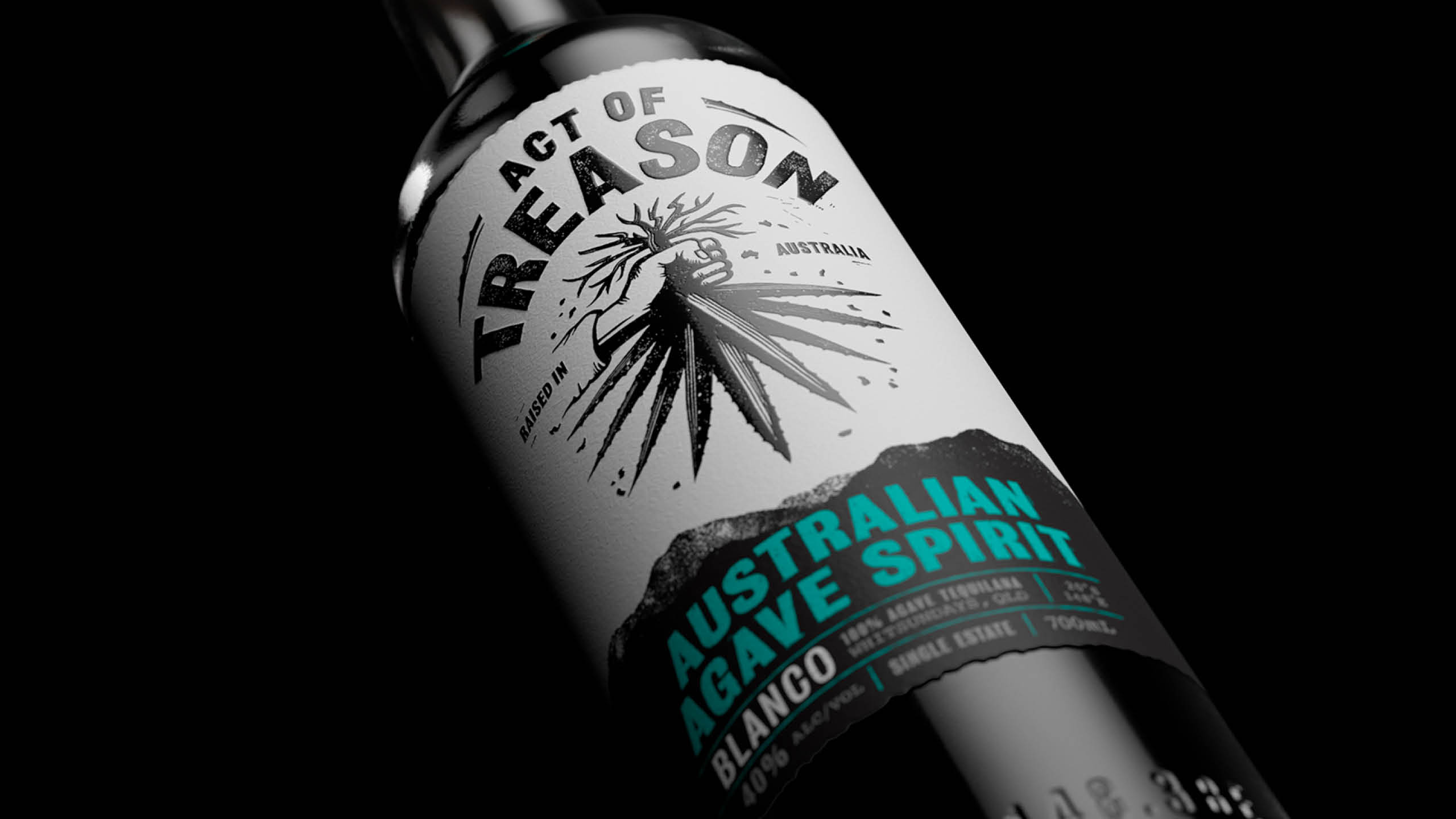 The name Act of Treason encapsulates the spirit of the story. Mexican Agave plants were uprooted and grown in Australia, a bold move symbolized by the hand triumphantly lifting the upside-down Agave. This symbol was hand-crafted, and lino printed to give the brand an earthy and authentic aesthetic.