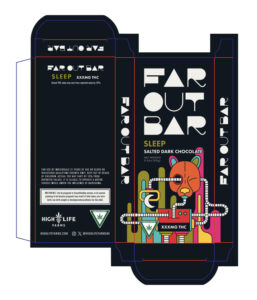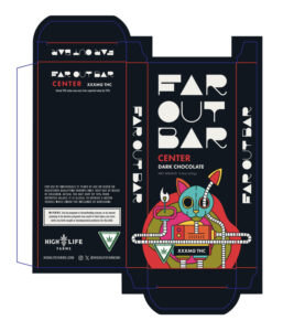 Far Out Bar is a cutting-edge packaging design project created for High Life Farms’ macrodose THC chocolate bars. This project involved developing an entirely new brand identity for Far Out Bar, focusing on a unique and cohesive visual experience that stands out on the shelf.
