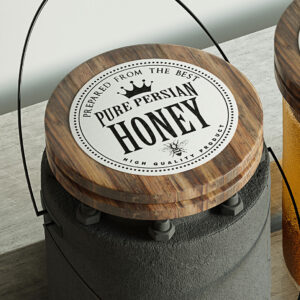 The packaging design of Persian Honey honey embraces nature and is a testament to their commitment to natural processes.
